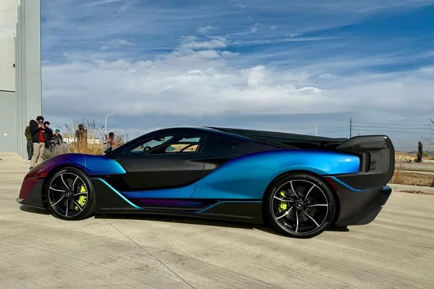 O exemplar que agora chega às mãos de um novo guardião em Monterey é o Sabre de número 11. Sua quilometragem é surpreendentemente baixa, ostentando apenas 160 quilômetros rodados. Essa quase imaculada condição atesta o cuidado com que foi tratado e a sua relevância como uma peça de museu sobre rodas. Visualmente, este Sabre é uma obra de arte moderna. Apresenta um acabamento em fibra de carbono “nu”, com detalhes em prata que realçam a sua estrutura intrincada. O toque de cor alaranjada, habilmente aplicado, pontua tanto a carroceria quanto o interior, criando uma identidade visual marcante e inconfundível. Essa paleta de cores, combinada com as linhas agressivas e aerodinâmicas, confere ao Sabre uma presença imponente e futurista.