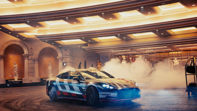 A colaboração foi inaugurada com uma ação espetacular e audaciosa, digna da cidade que nunca dorme. Imagine a cena: em meio ao brilho neon de Las Vegas, Brad Pitt, com seu carisma inconfundível, aguarda o serviço de valet. A surpresa se revela quando o inesperado atendente surge ao volante de um protótipo camuflado e imponente: ninguém menos que George Russell, pentacampeão da Fórmula 1 e membro da equipe Mercedes-AMG PETRONAS F1. A manobra não foi apenas uma demonstração de serviço, mas um convite para vislumbrar a essência do Mercedes-AMG GT Coupé 4 Portas em ação. Russell, com a precisão e a ousadia que lhe são características, extraiu do protótipo uma amostra do que está por vir: a agilidade surpreendente, a resposta instantânea e a emoção pura que definem um verdadeiro Mercedes-AMG.