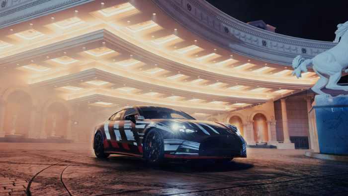Para materializar o início desta nova era e a parceria com Brad Pitt, a Mercedes-AMG orquestrou um evento que, à primeira vista, poderia ser confundido com uma cena de um filme de ação de grande orçamento. Las Vegas, com seu cenário de luzes néon e seu ritmo frenético, serviu de palco para uma demonstração memorável. Brad Pitt, com seu carisma natural, foi visto aguardando um serviço de valet. No entanto, o que se seguiu foi uma reviravolta digna de roteiro. O motorista que se aproximou, ao volante de um protótipo camuflado do futuro Mercedes-AMG GT Coupé 4 Portas, era ninguém menos que George Russell, o talentoso piloto da equipe Mercedes-AMG PETRONAS F1.